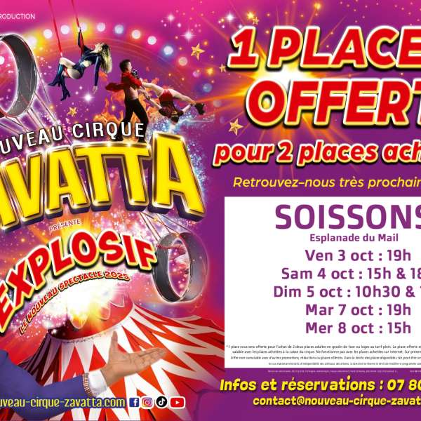 Une place offerte pour 2 achetées sur présentation du bon (voir conditions aux caisses du cirque).