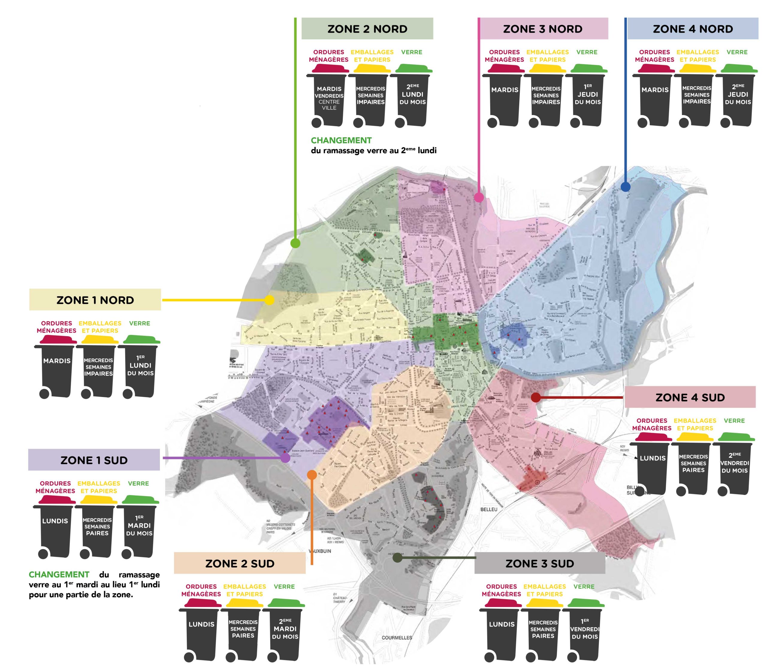 Cette réorganisation permet d’optimiser les tournées, de réduire les nuisances et de favoriser un cadre de vie plus propre et plus agréable pour tous. Un nouveau calendrier de collecte, accompagné d’un plan par zone, sera prochainement distribué dans les boîtes aux lettres des Soissonnais. Vous y retrouverez les jours de collecte et les Points d’apports volontaires entérrés de votre secteur.